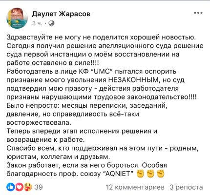 ? Профсоюз «AQNIET» продолжает надежно защищать трудовые права медицинских работников и доказывает:
