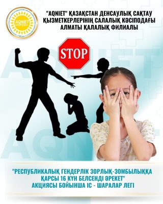 AQNIET кәсіподағының Алматы қаласындағы филиалының құрамындағы медициналық мекемелер “Әйелдерге қатысты зорлық-зомбылыққа қарсы” Республикалық акция аясында іс-шара өткізді.