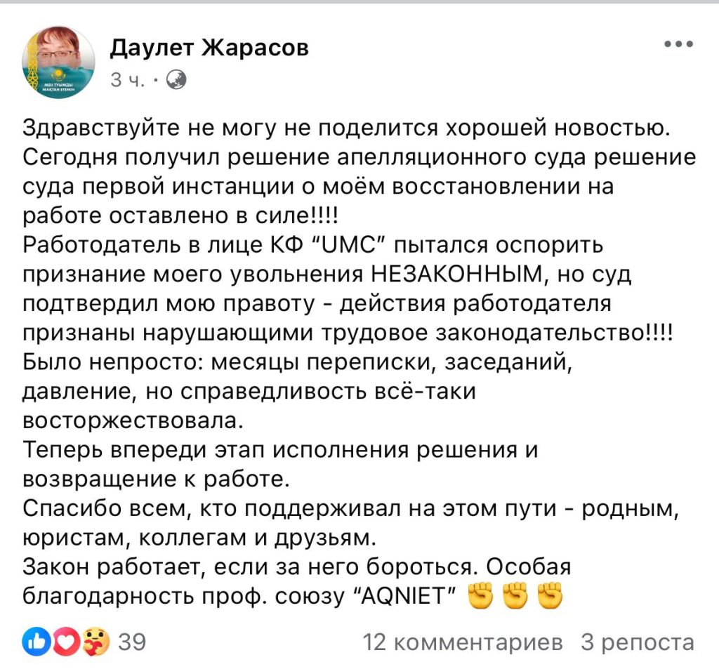 КАЗАХСТАНСКИЙ ОТРАСЛЕВОЙ ПРОФСОЮЗ РАБОТНИКОВ ЗДРАВООХРАНЕНИЯ И ОБЩЕСТВЕННОГО ОБСЛУЖИВАНИЯ «AQNIET»